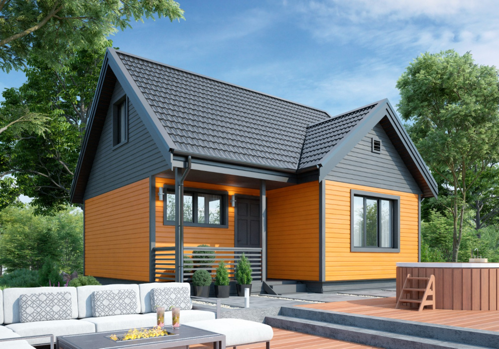 Крыша бани изготовлена из оцинкованного профнастила, обеспечивающего защиту от непогоды. Этот кровельный материал гарантирует долговечность при сохранении эстетичного внешнего вида.
