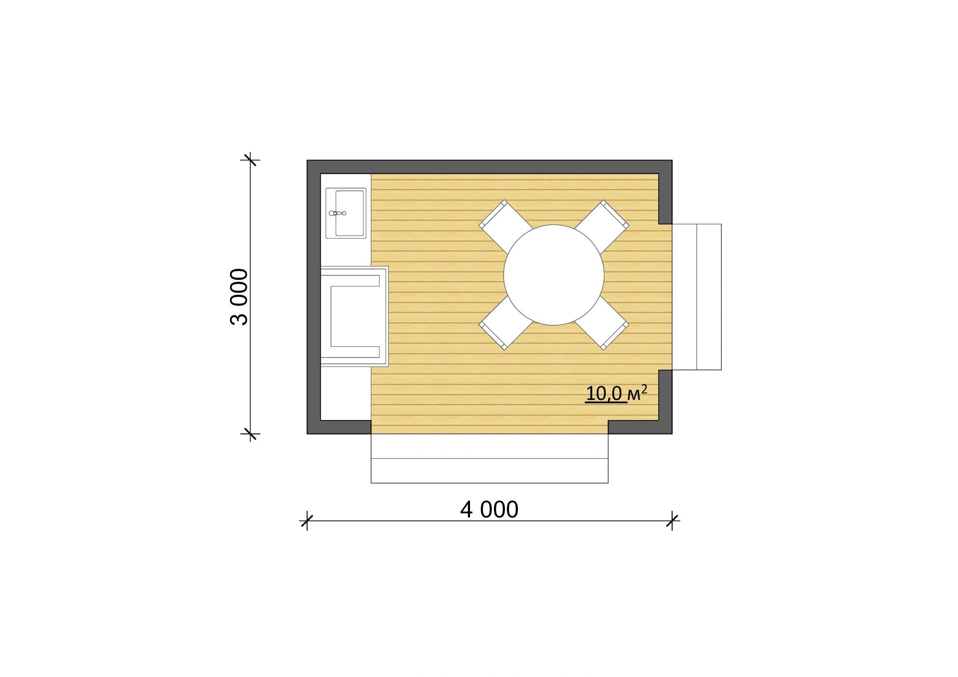 Она небольшая, отлично подойдет для небольшого участка, ее площадь всего 10 м². Однако обеденный стол и стулья в ней точно поместятся. Закажите беседку, порадуйте себя и своих близких!