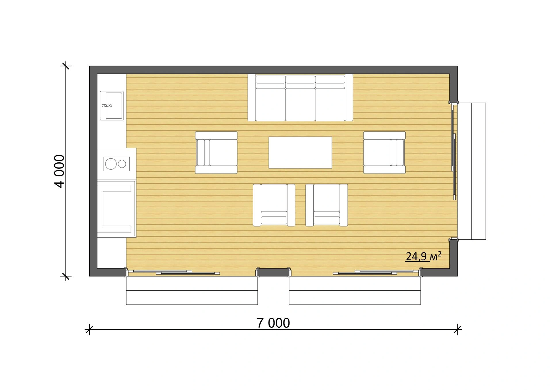 Беседка 4х7 — просто находка для тех, кто любит собирать друзей и родных у себя на участке. Почти 25 м² — это полноценная зона отдыха, куда можно поставить большой обеденный стол, мангал, подвесное кресло и даже мини-холодильник.