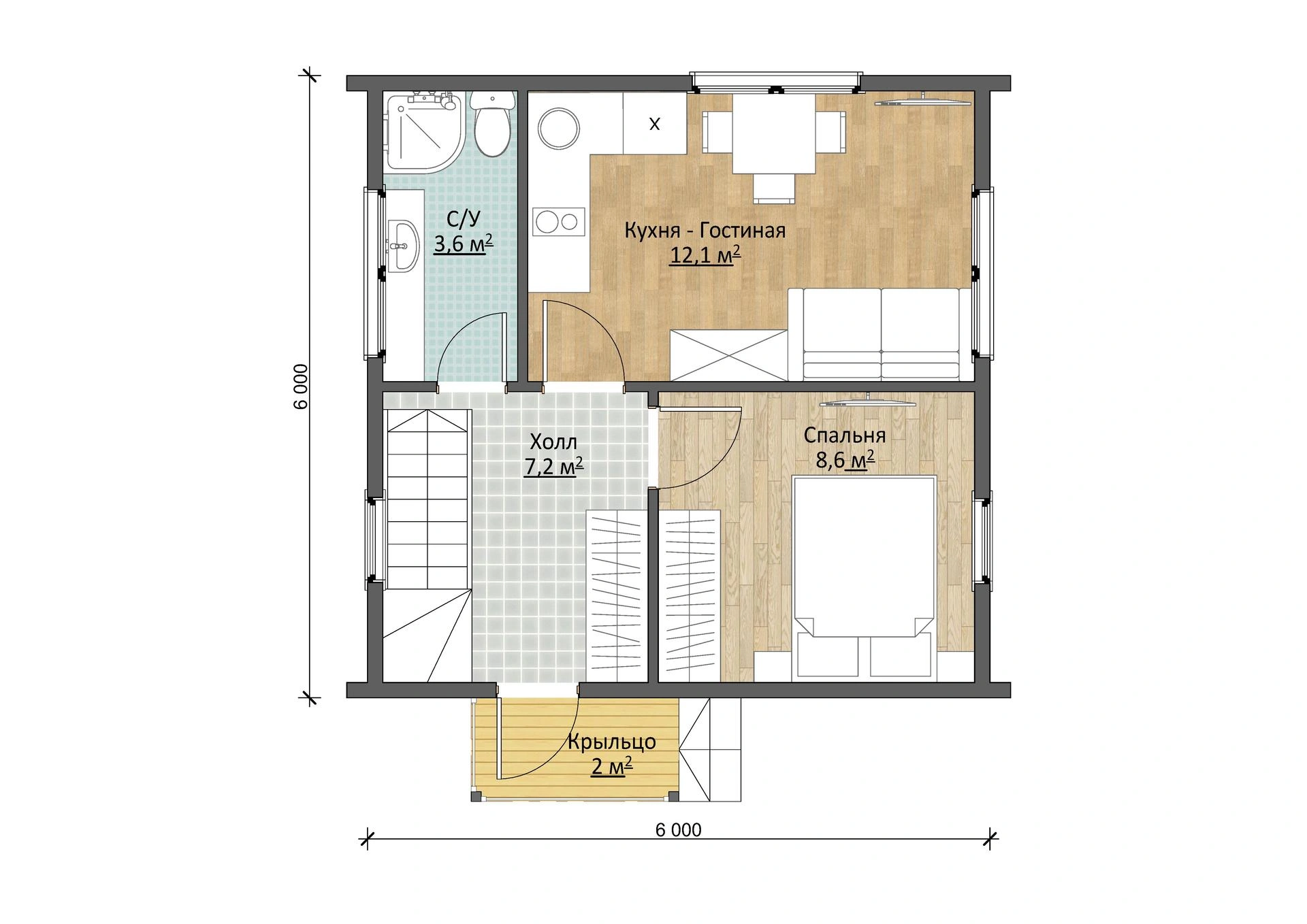 Каркасный двухэтажный дом 6х6 — то, что нужно небольшой молодой семье. Это стильный и современный выбор, который будет радовать жильцов круглый год.
