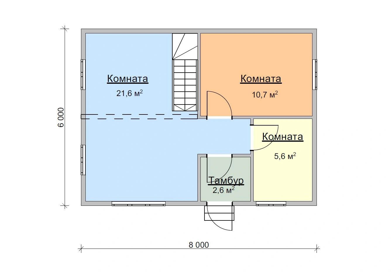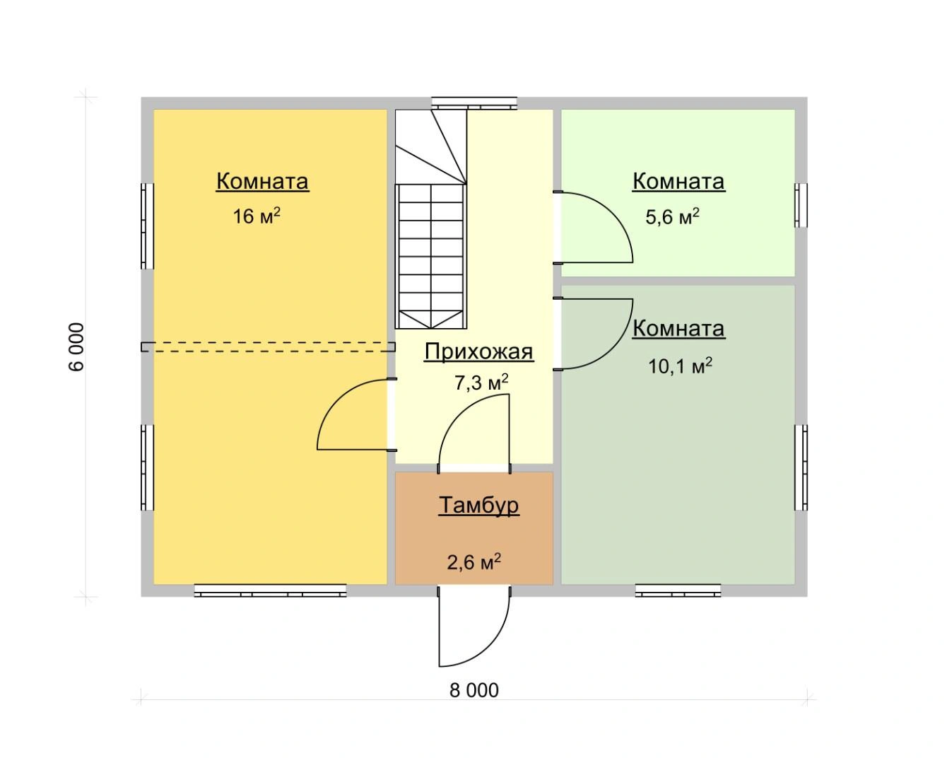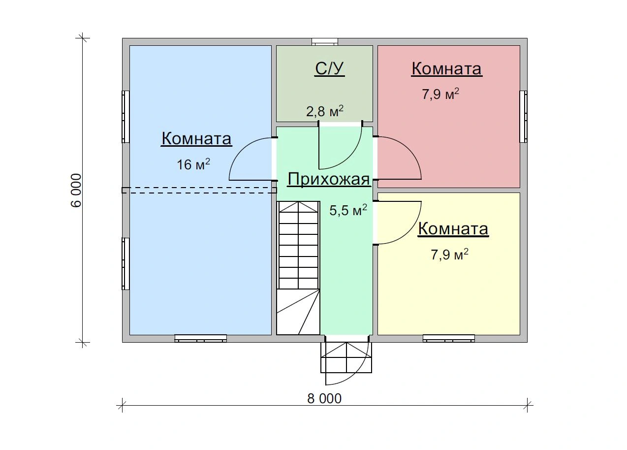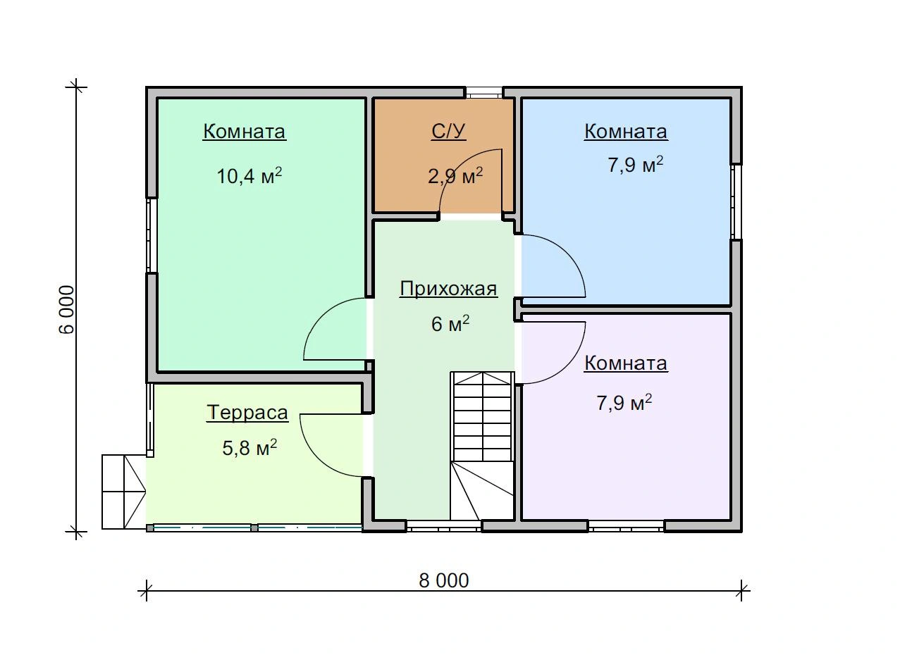 Надежный брусовый дом Дачник 6х8 площадью 71,5 м2 выполнен из натурального материала. Брус долговечен и устойчив к воздействию природных сил. Это означает, что он простоит в первозданном виде несколько десятков лет и достанется вашим детям и внукам!