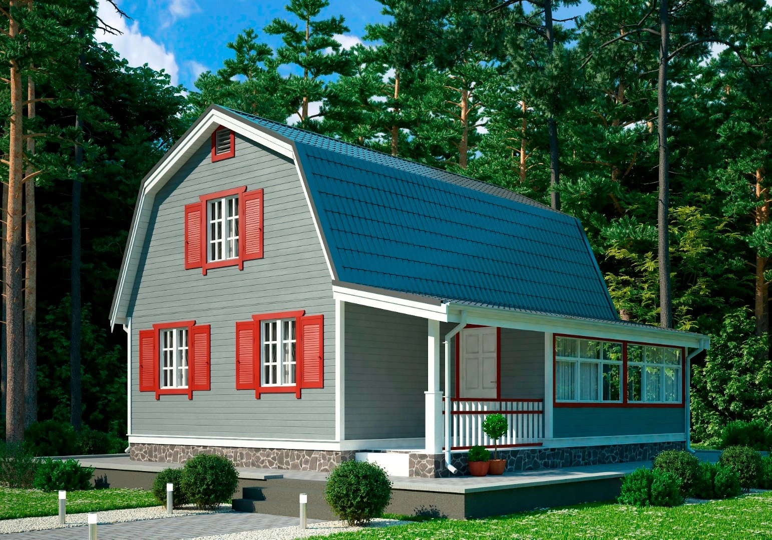 В наличие 4 планировки, в каждую из которых входят: кухня-гостиная, санузел, 3 комнаты, прихожая, а также тамбур или терраса. Дом подходит для летнего, осеннего и зимнего проживания. Есть возможность провести инженерные коммуникации, включающие освещение, отопление, водоснабжение и канализацию. И тогда домик станет удобным для постоянного места жительства.
