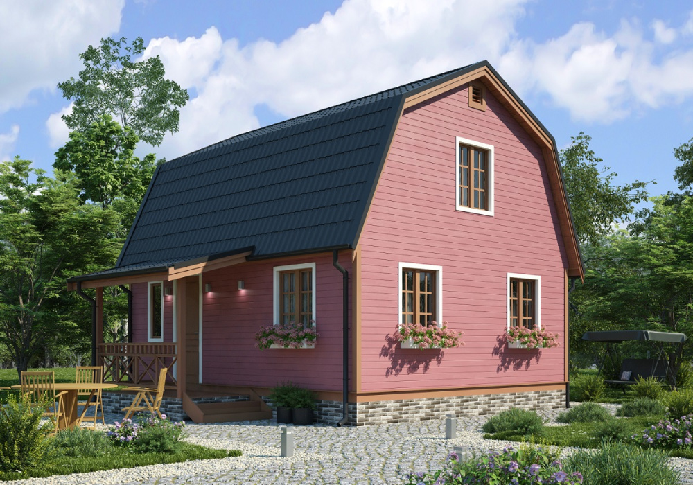 Дачный домик площадью 62,19 м² с мансардой и светлыми окнами, — комфортабельное жилье для загородной жизни. Срок строительства, в зависимости от комплектации дома — от 3 дней. На первом этаже предусмотрен просторный 8,5-метровый холл, в котором можно разместить шкафы, полки для хранения одежды и предметов обихода.