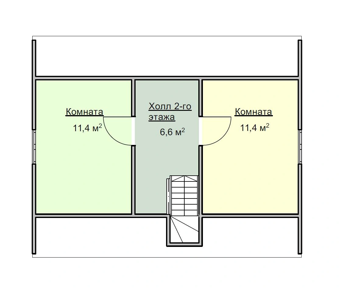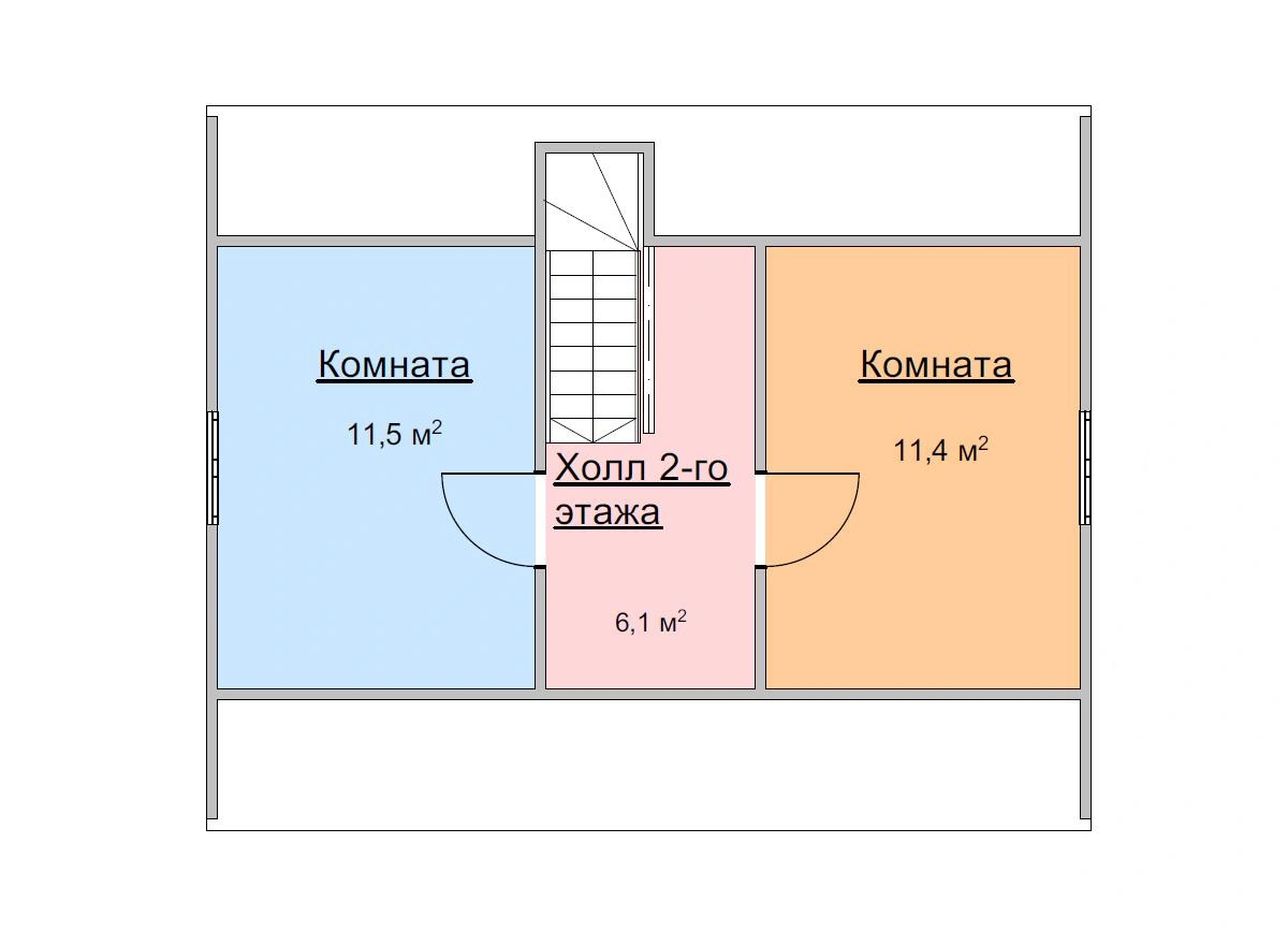 Площадь застройки — 48 м², благодаря наличию мансарды, компактный дом имеет достаточно места для размещения небольшой семьи. В доме 3 изолированных спальни. По желанию одну или несколько из них можно преобразовать в мастерскую или кабинет.