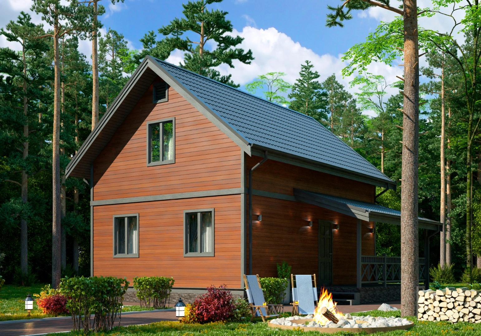 Комфортабельный полутораэтажный дом площадью 84,2 м² для загородной жизни всей семьей.