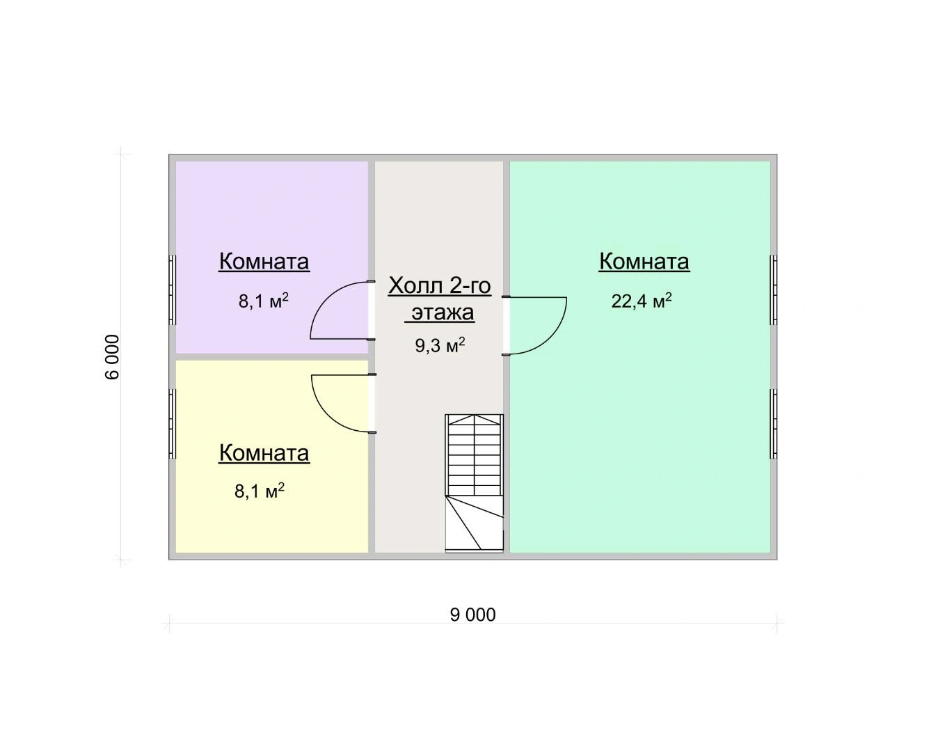 Наверху еще одна просторная комната в 19,6 м² и две поменьше — площадью в 9,5 м².