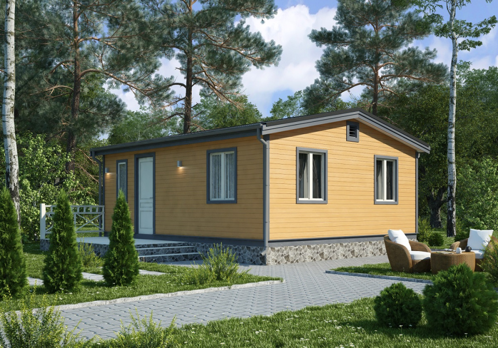 Проект можно адаптировать под индивидуальные предпочтения. Вы можете выбрать отделку стен, покрытие кровли, заказать монтаж фундамента, прокладку коммуникаций. Строительство займет от 3 дней.