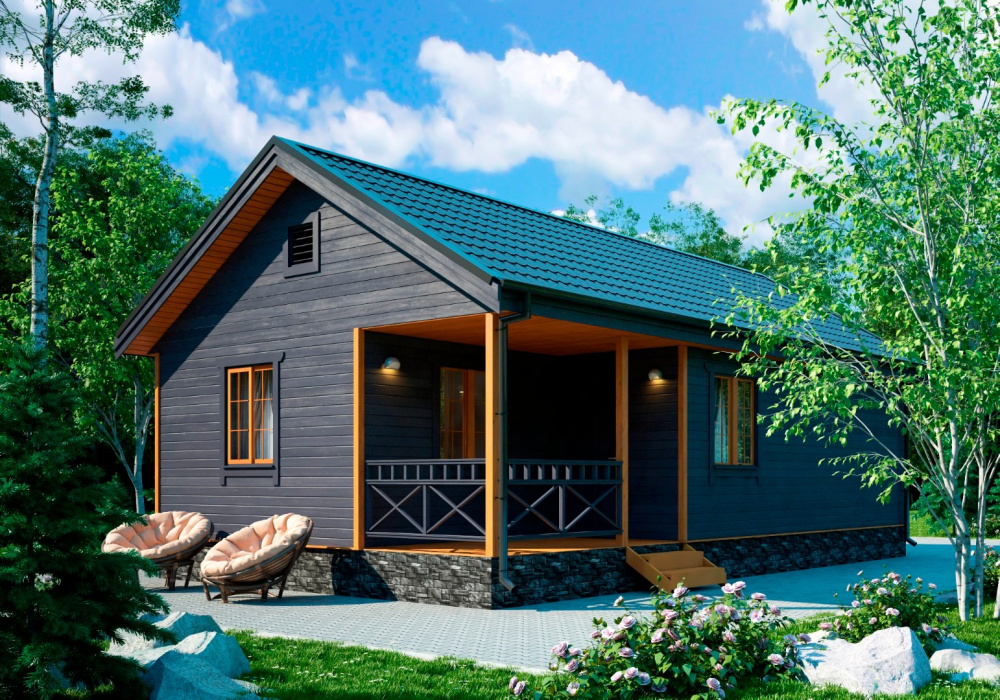 Вместительный одноэтажный садовый дом можно использовать как дачный вариант на лето или небольшой коттедж для постоянного проживания. Благодаря средним габаритам 6х9 м его легко интегрировать на участке, а удачная планировка с обособленными помещениями удобна при оформлении интерьеров.