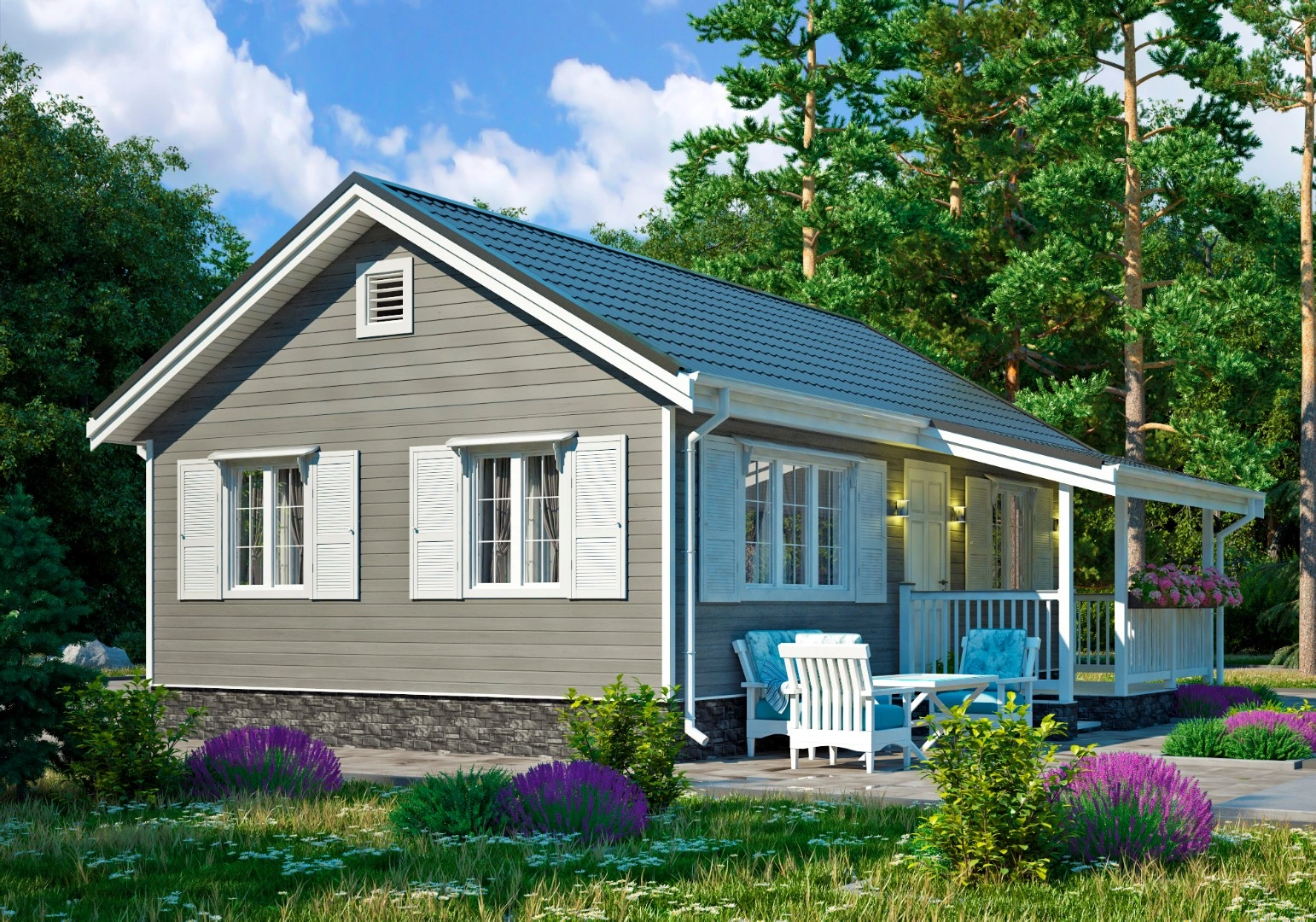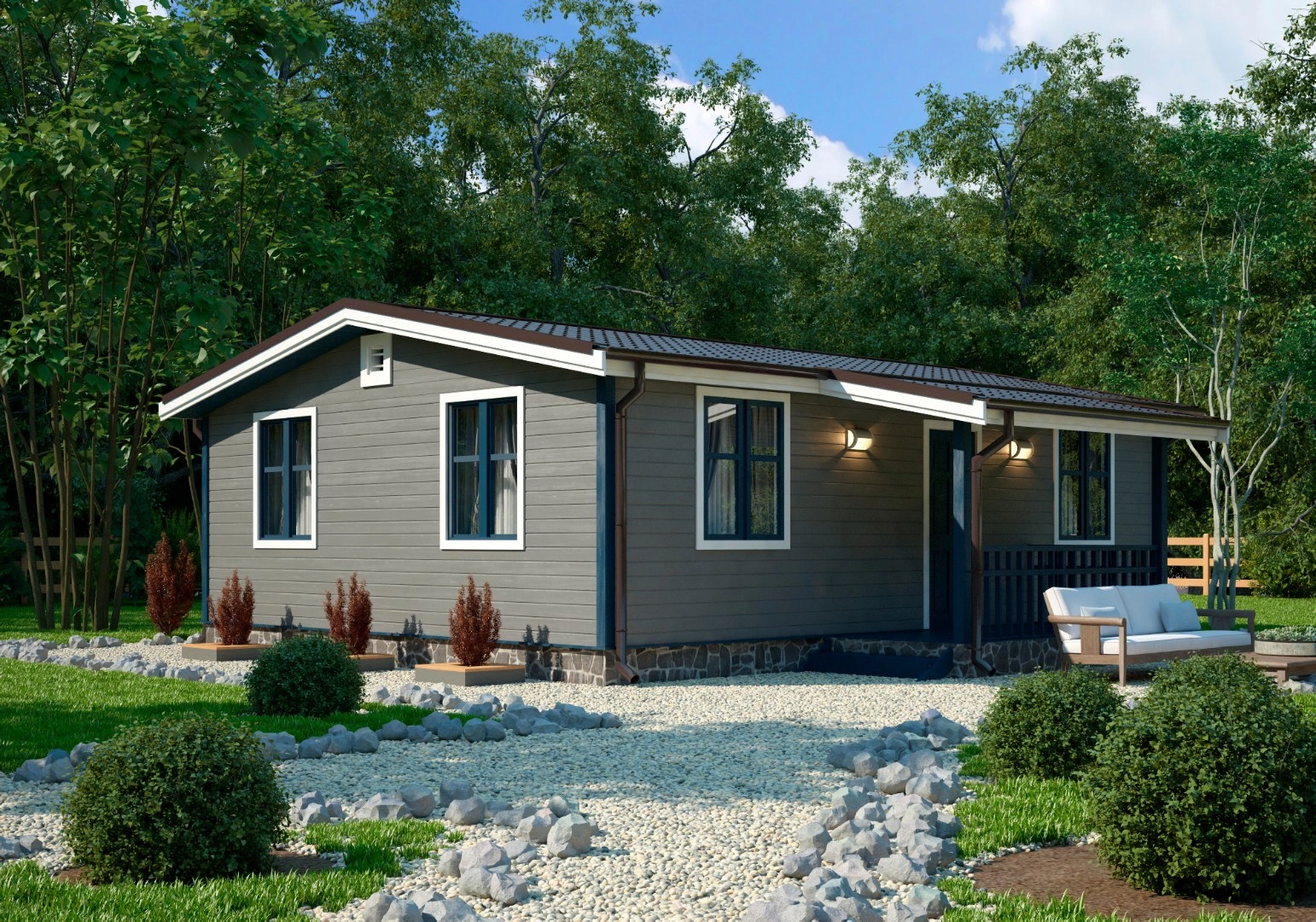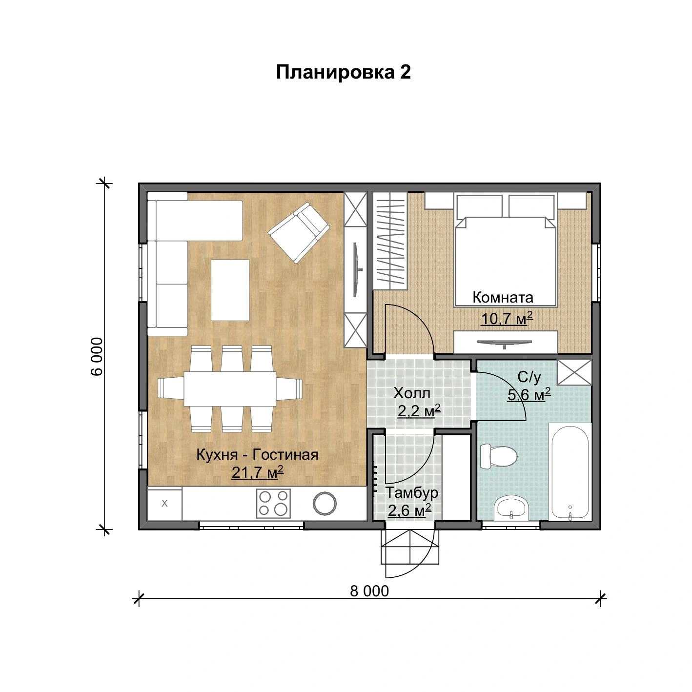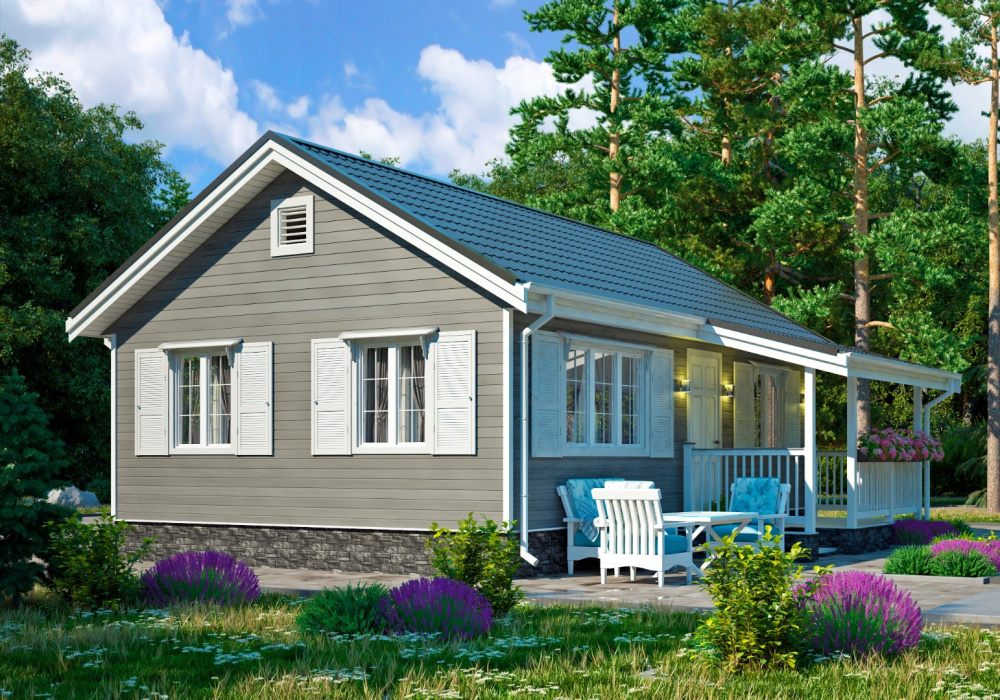 Небольшой садовый дом 6х8 м с одной спальней подойдет для постоянного или временного проживания. Срок возведения занимает от 3 дней, он зависит от выбранной комплектации (лето, осень, зима), конструкции крыши, особенностей внешнего оформления.