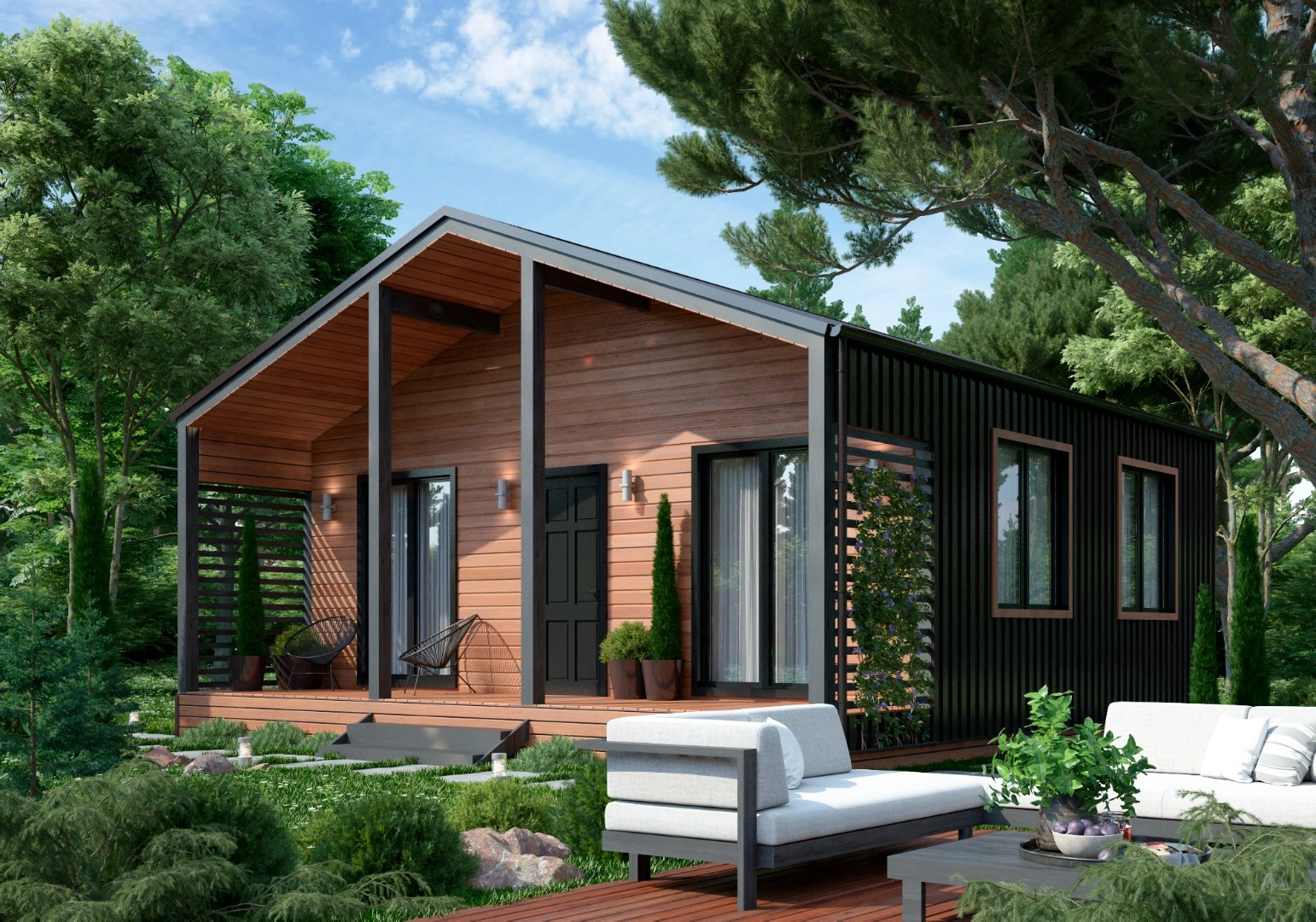 Компактный дом подойдет для установки на дачном участке или в качестве загородного жилья. Современные технологии и эргономичная конструкция гарантируют комфорт.