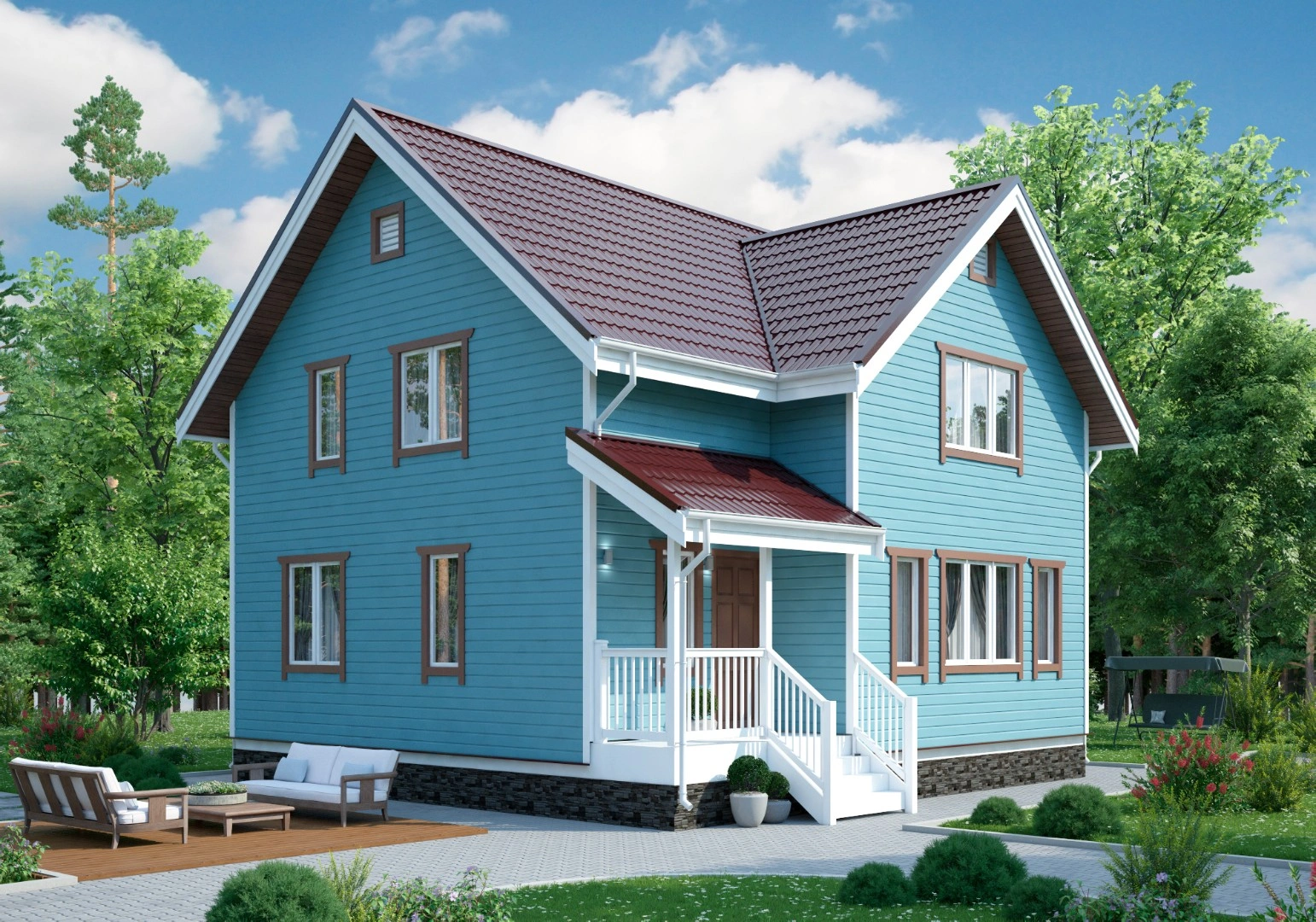 Статус 8х8,5 Ария — это тандем простоты и красоты. Экстерьер коттеджа не вычурный, при этом в нем есть что-то изысканное.