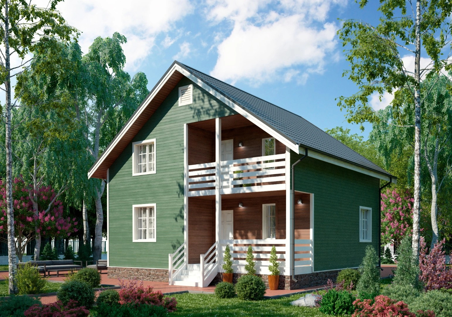 Статус 8х9 Аврора — двухэтажный надежный коттедж. Этот дом идеально впишется в спокойную загородную атмосферу.