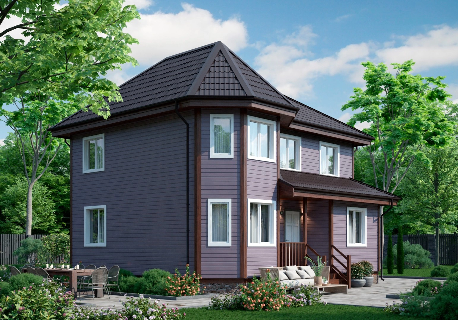 Солидный двухэтажный коттедж Статус 8х9 Вираж призван покорять своим внешним видом и внутренним наполнением.